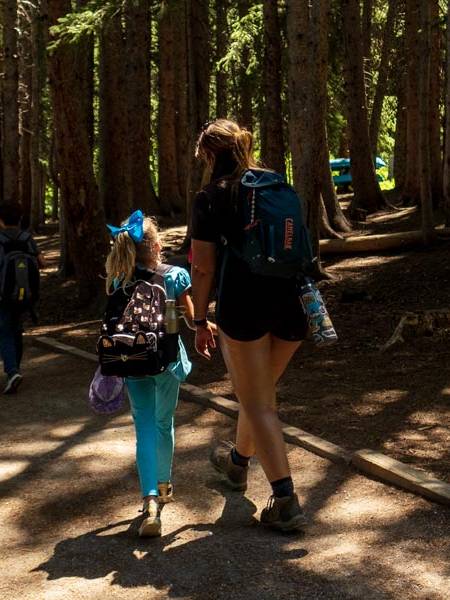 Guided hikes through alpine meadows and canyon trails help campers learn about the local ecosystem.